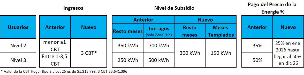 El nuevo esquema divide el universo entre hogares subsidiados y los que pagan la factura plena. Para ser parte del primer grupo los ingresos familiares no deben superar tres canastas básicas totales (CBT), lo que según el INDEC hoy equivale a 3,6 millones de pesos mensuales. Esto implica en la práctica una fusión entre las actuales categorías de ingresos bajos (N2) y medios (N3), aunque con un umbral menor para este último, que era de 3,5 canastas básicas totales, lo que supone un achicamiento del universo de beneficiados. Desde la secretaría de Energía se aclaró que los usuarios inscriptos en el registro RASE no tendrán que hacer ningún trámite.