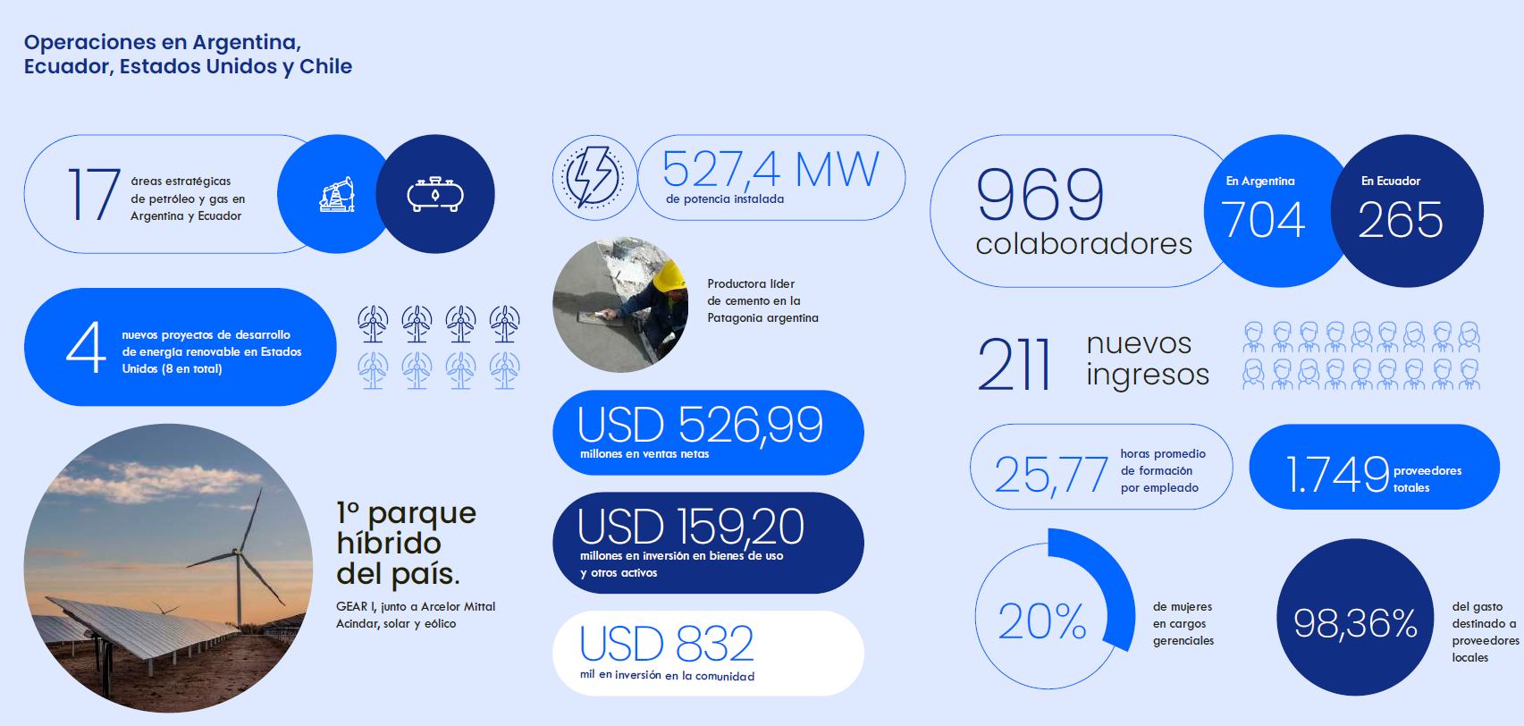 La compañía de energías renovables, hidrocarburos y cemento detalló su desempeño económico, ambiental y social, además de sus objetivos para el mediano y largo plazo.