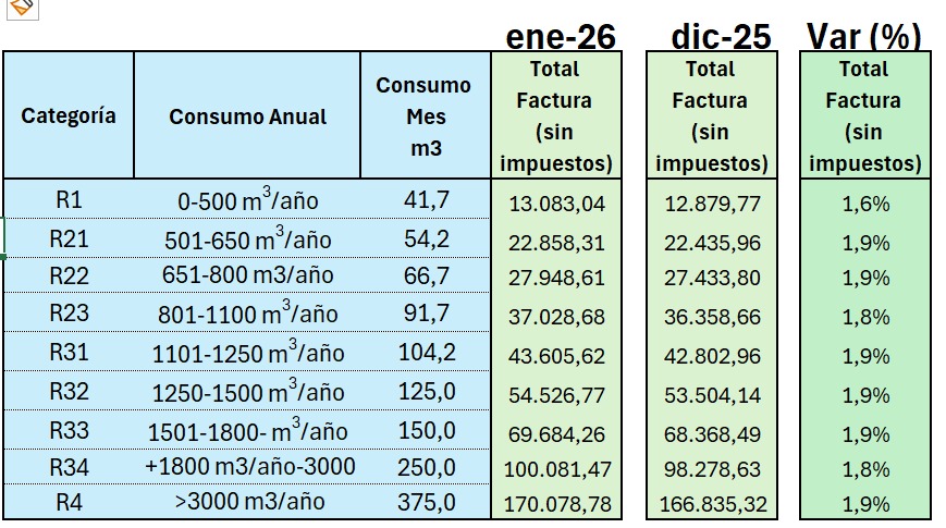 Un hogar de consumos medios -entre 801 y 1.000 m3/año- abonará desde enero una boleta de $37.028,68, es decir 1,8 por ciento más que en diciembre, mientras que uno de consumo alto -más de 3.000 m3/año- deberá desembolsar $170.078,78. Por otro lado, quienes tengan una demanda baja -entre 501 y 650 m3 por año- pagarán $22.858,31.